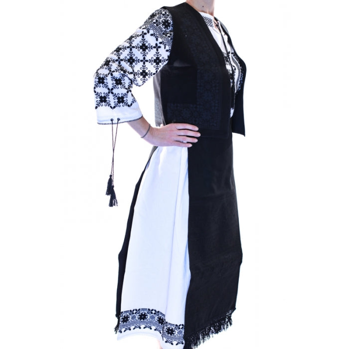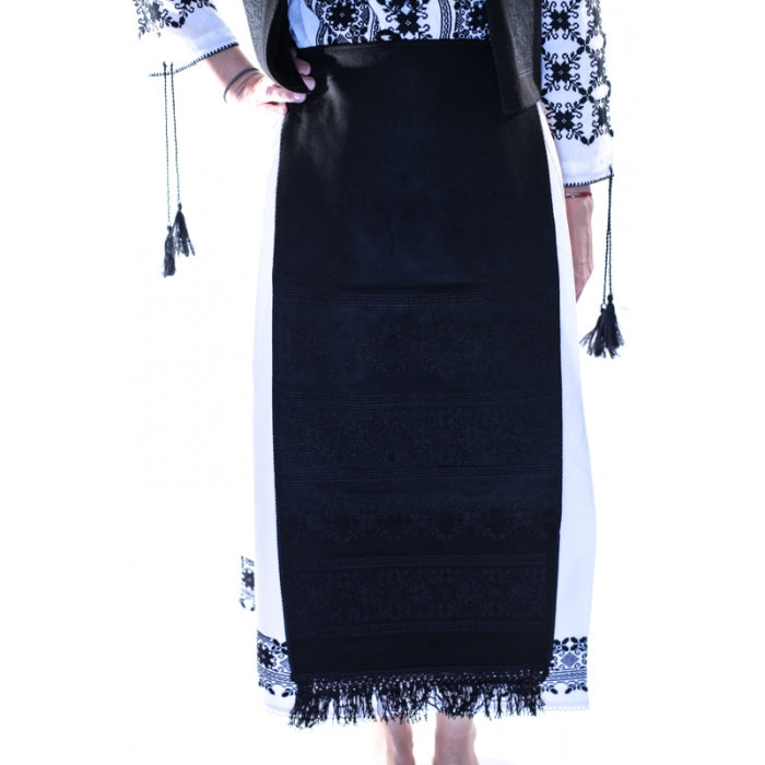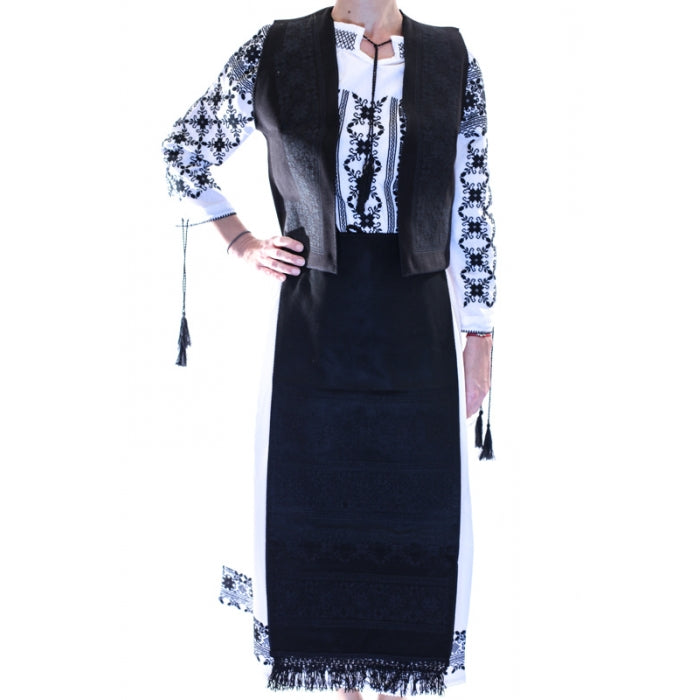 Setul contine: vesta, doua fote/catrinte fata/spate.ie stilizata,fusta. Dimensiuni fote: lungime 80 (fara franjuri), latime 35 cm.