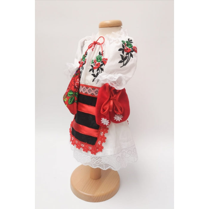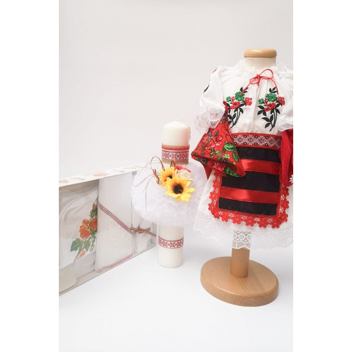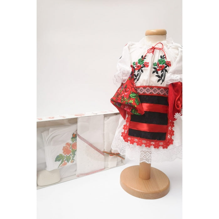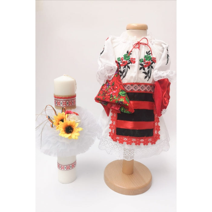 Costumas popular traditional romanesc pentru botez. Include, camasa bumbac, fota, batic, botosei.