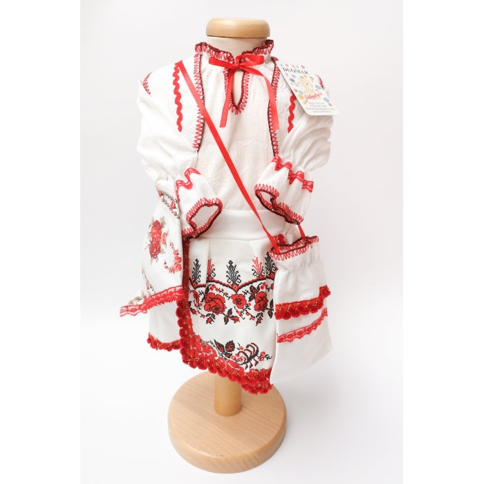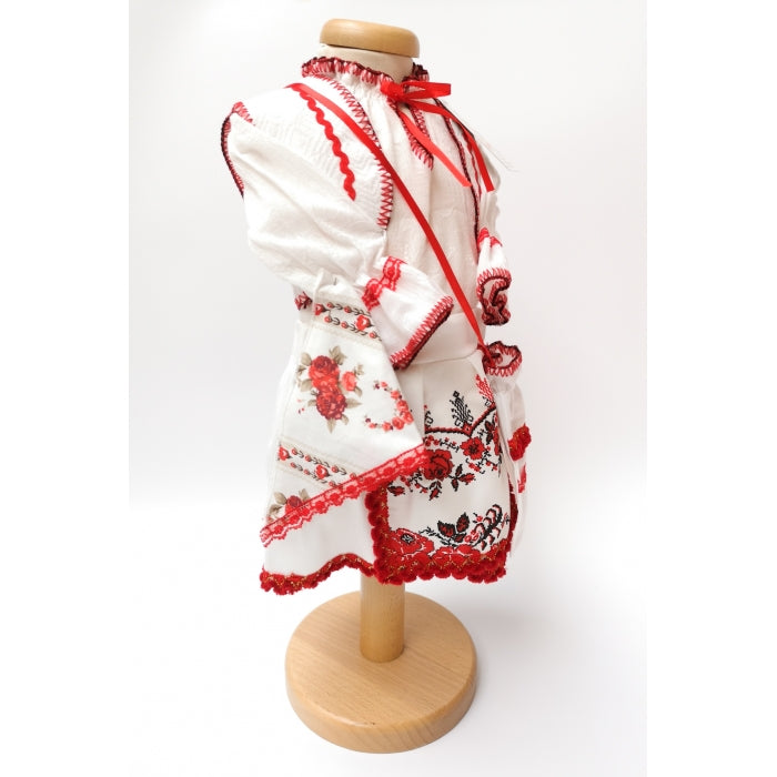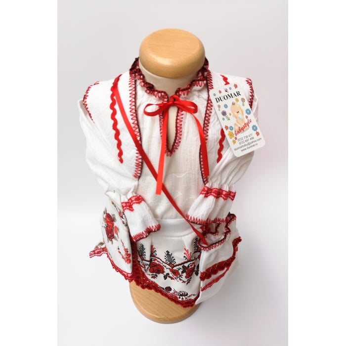 Costumas popular traditional romanesc pentru botez. Include vesta, camasa bumbac, fota, batic, gentuta.