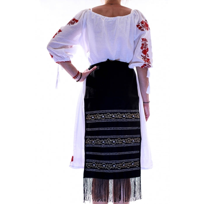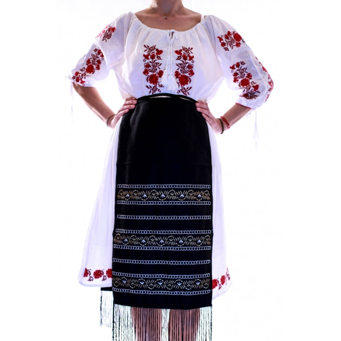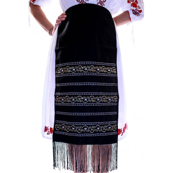 Material: stofa cu lana in compozitie 58%. Broderie cusuta la masina. Captuseala din bumbac.