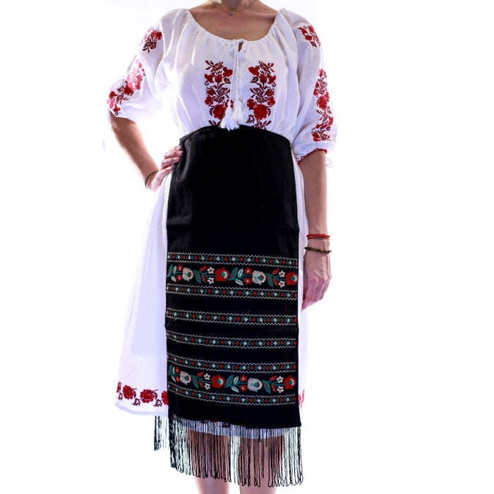 Material: stofa cu lana in compozitie 58%. Broderie cusuta la masina. Captuseala din bumbac.