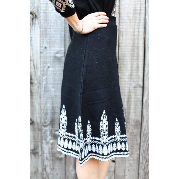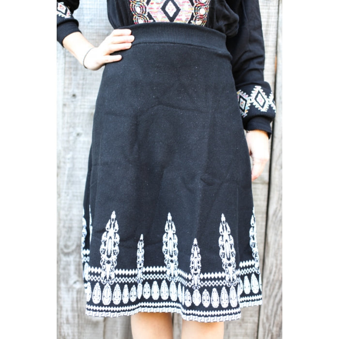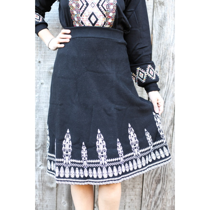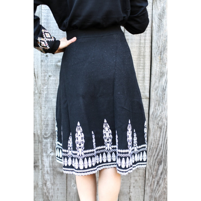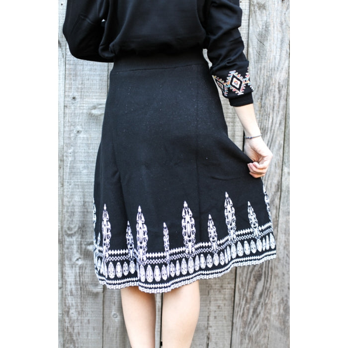 Fusta cu model traditional romanesc brodat la masina, cu elastic in talie, din tricot.