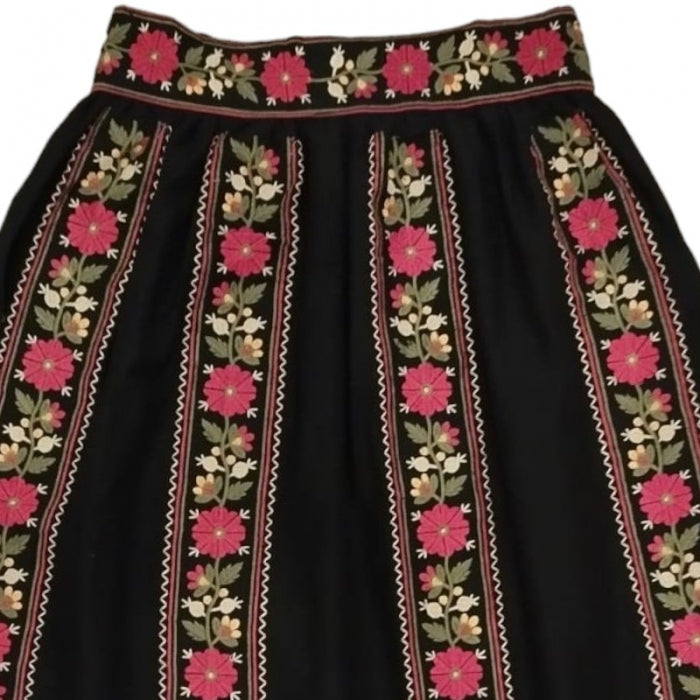 Redescoperă tradiția cu această fustă tradițională brodată, o piesă autentică ce îmbină arta populară românească cu eleganța modernă. Această fustă este decorată cu motive tradiționale elaborate, ce reînvie frumusețea și simbolistica folclorului românesc. Fusta este realizată din materiale naturale și respirabile, asigurând confortul pe tot parcursul zilei.