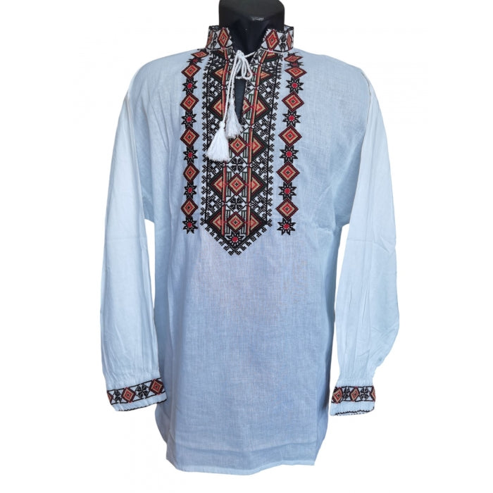 Îmbracă tradiția românească cu stil și demnitate! Această cămașă tradițională pentru bărbați este realizată din pânză albă de bumbac subțire, ușoară și confortabilă.