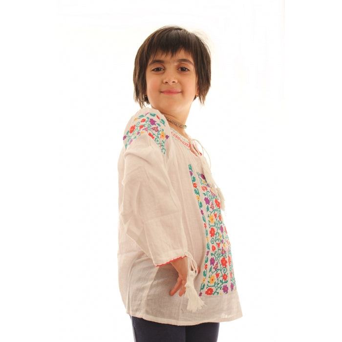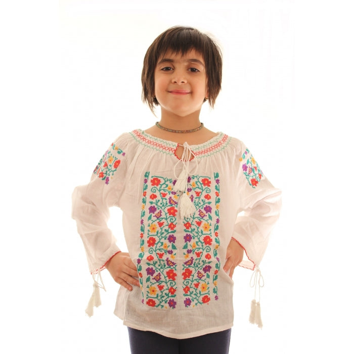 Ie romaneasca pentru copii cu model traditional brodat la masina.