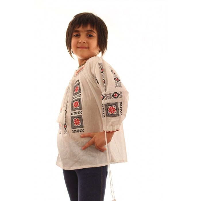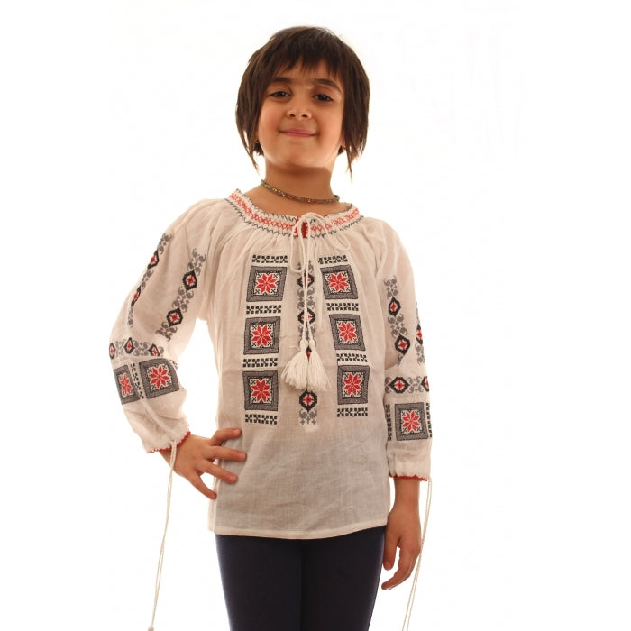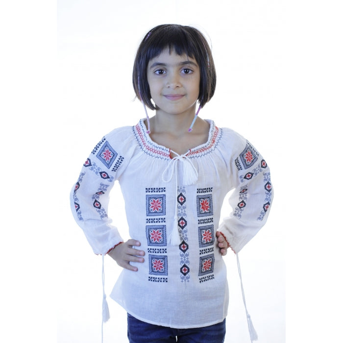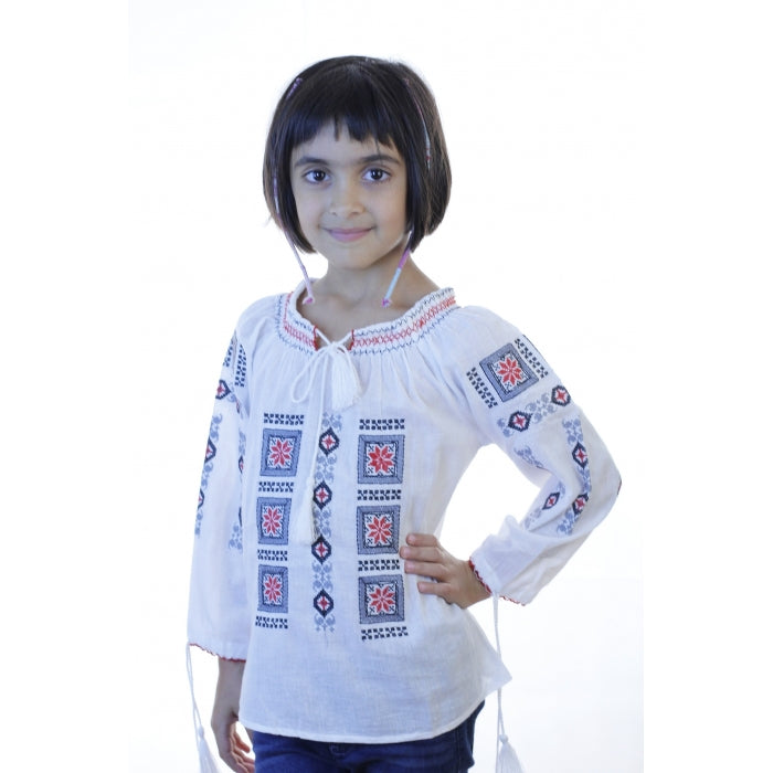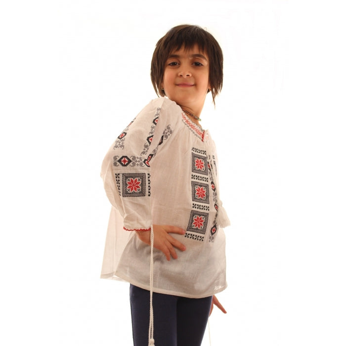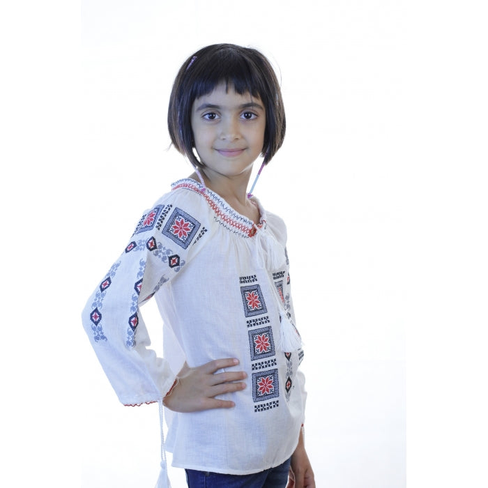 Ie romaneasca pentru copii cu model traditional brodat la masina.