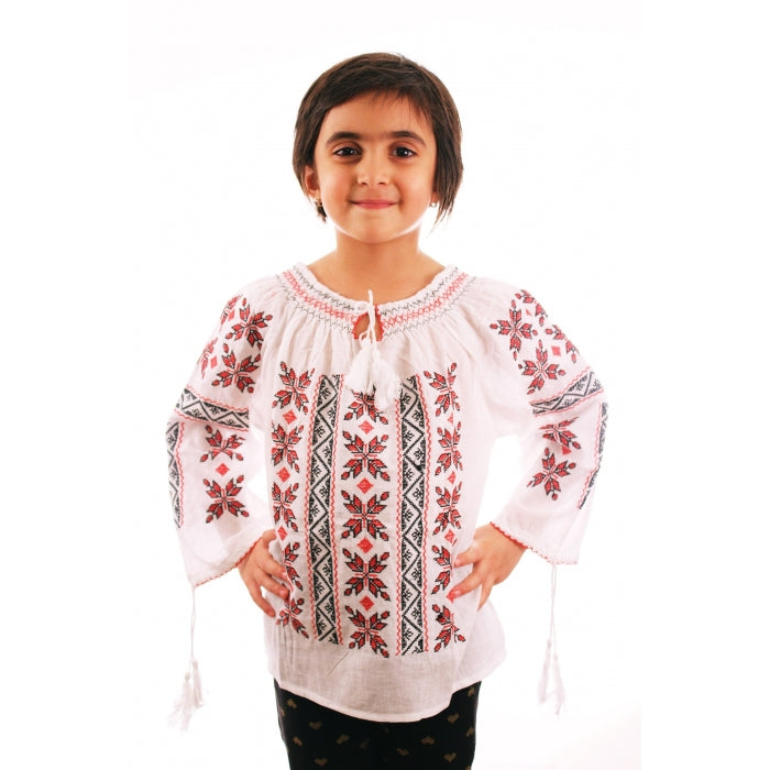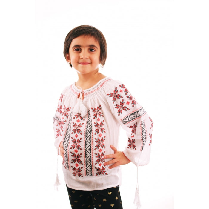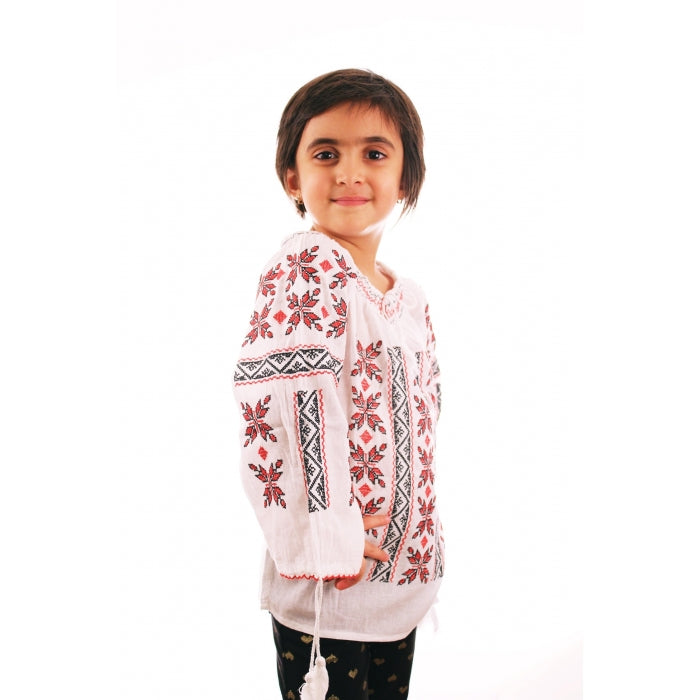 Ie romaneasca pentru copii cu model traditional brodat la masina.