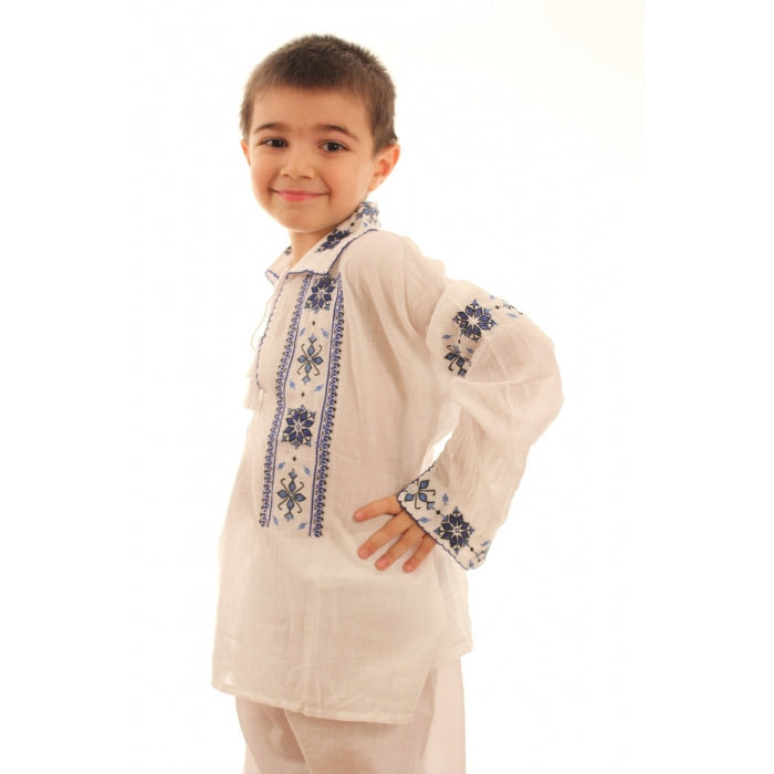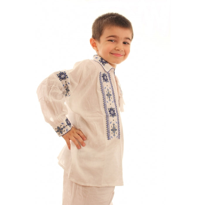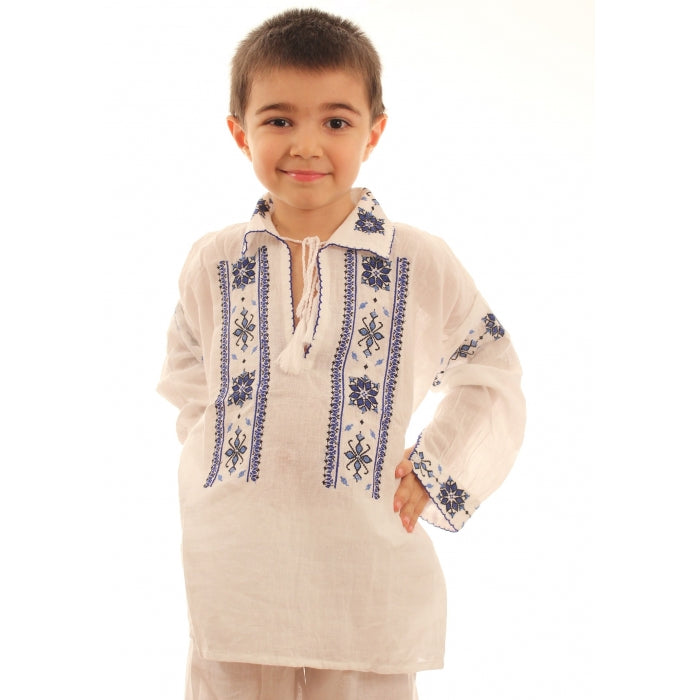 Ie romaneasca pentru copii cu model traditional brodat la masina.