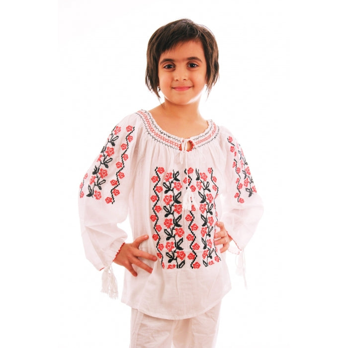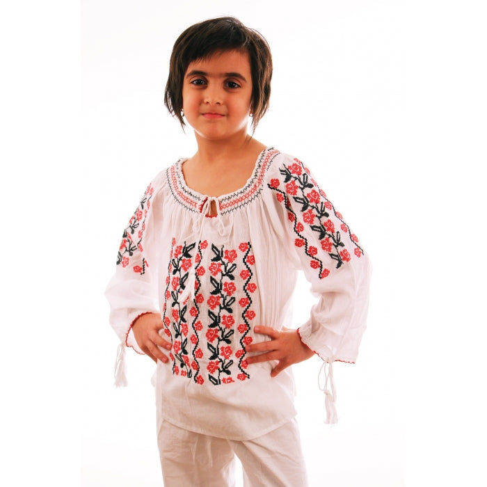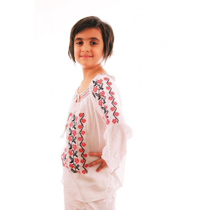 Ie romaneasca pentru copii cu model traditional brodat la masina.