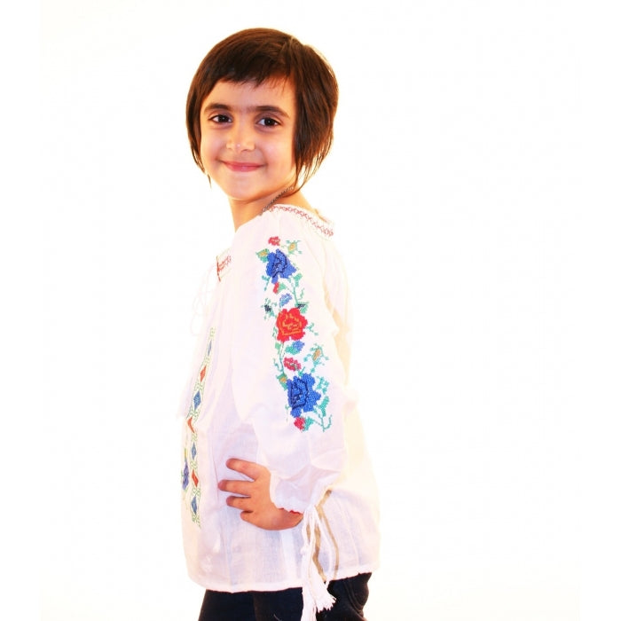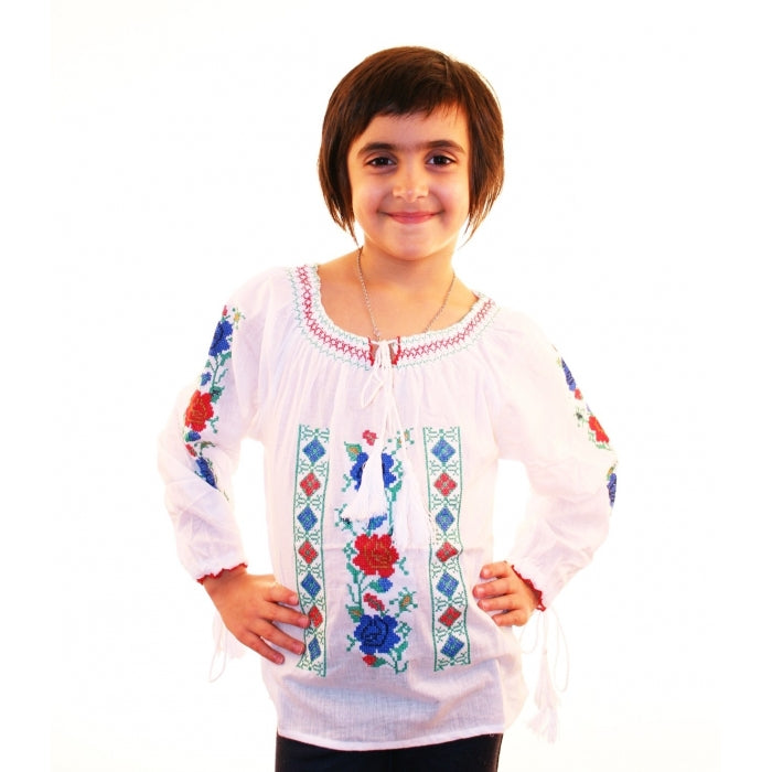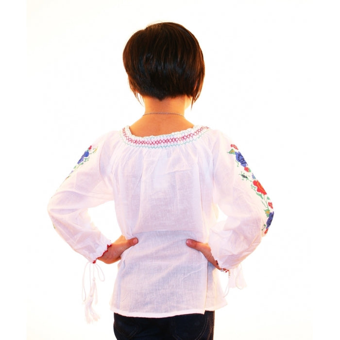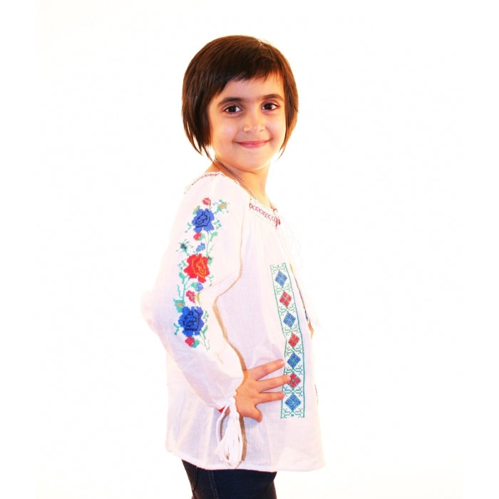 Ie romaneasca pentru copii cu model traditional brodat la masina.