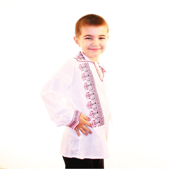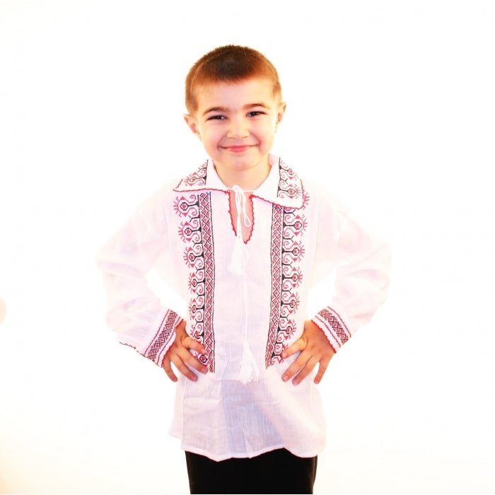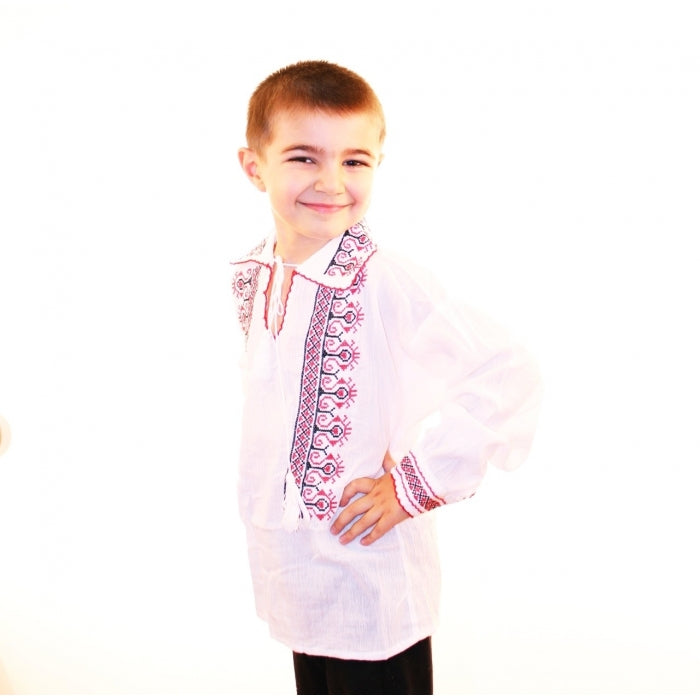 Ie romaneasca pentru copii cu model traditional brodat la masina.