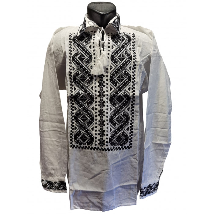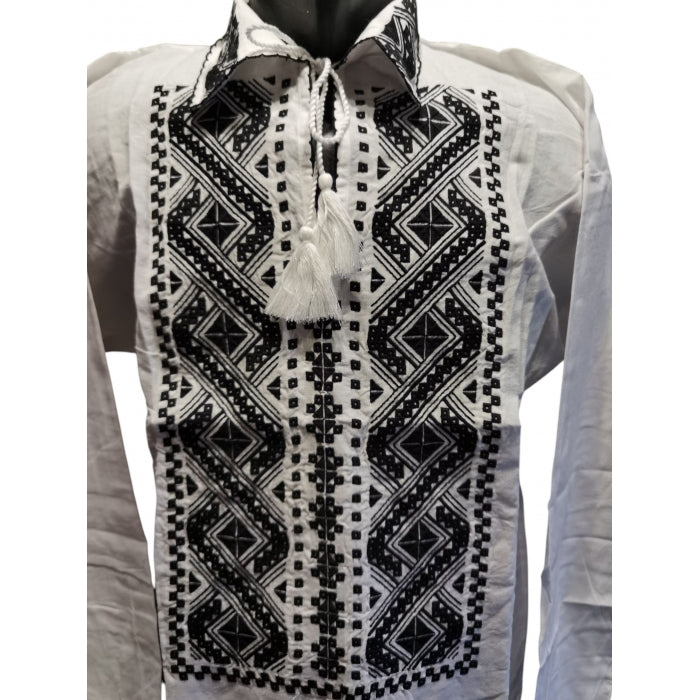 Ie tradițională românească bărbătească, broderie alb-negru, mărimi S–3XL