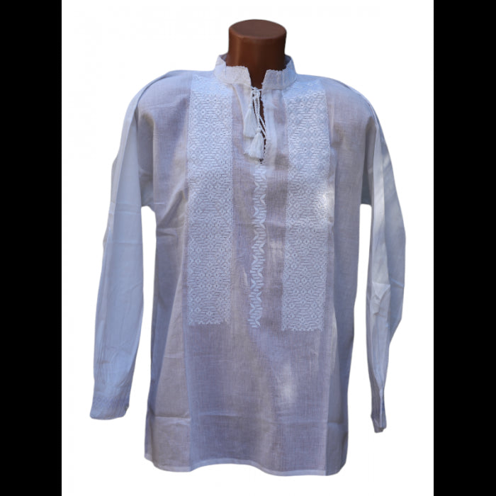 Ie tradițională românească, confecționată din bumbac 100%, reprezintă alegerea perfectă pentru cei ce doresc să poarte o piesă vestimentară cu adevărat autentică și de calitate. Această ie cu mâneci lungi, decorată cu broderii tradiționale pe piept, guler și manșete, emană eleganță și rafinament. Sistemul de închidere cu șnur adaugă un plus de autenticitate și confort.