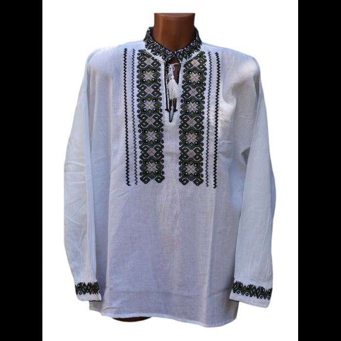 Ie tradițională românească, confecționată din bumbac 100%, reprezintă alegerea perfectă pentru cei ce doresc să poarte o piesă vestimentară cu adevărat autentică și de calitate. Această ie cu mâneci lungi, decorată cu broderii tradiționale pe piept, guler și manșete, emană eleganță și rafinament. Sistemul de închidere cu șnur adaugă un plus de autenticitate și confort.
