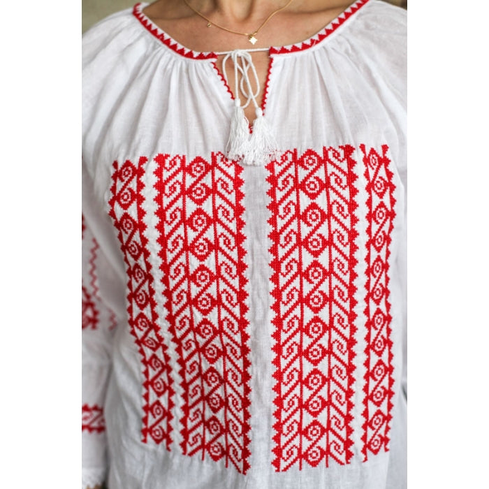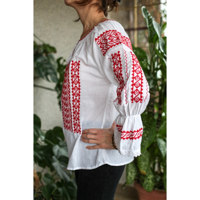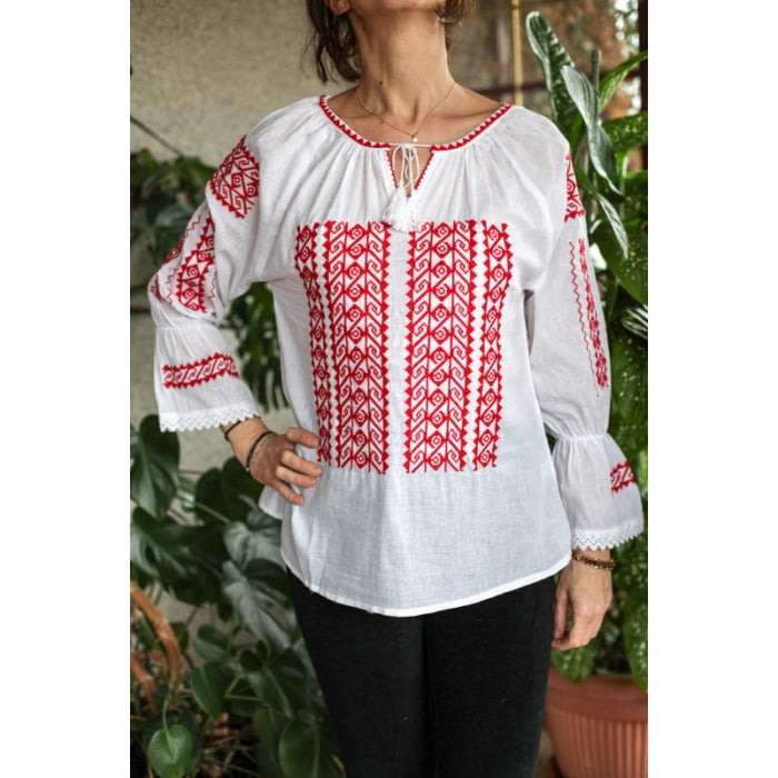 Bluza brodata la masina din panza de bumbac 100%.