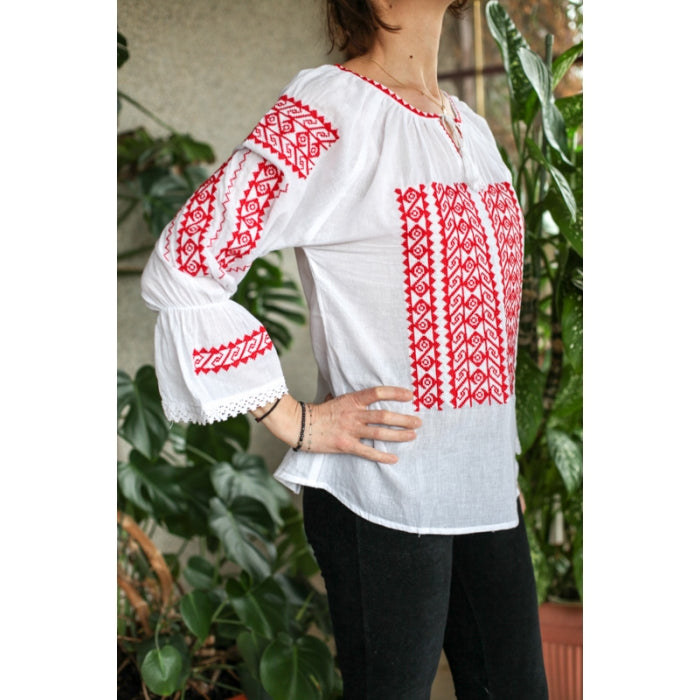 Ie romaneasca brodata cu motive romanesti traditionale, MANECA TREI SFERTURI