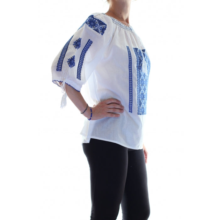 Ie romaneasca brodata cu motive romanesti traditionale. Modelele cusute pe iile romanesti, dar si varietatea culorilor au o semnificatie aparte.