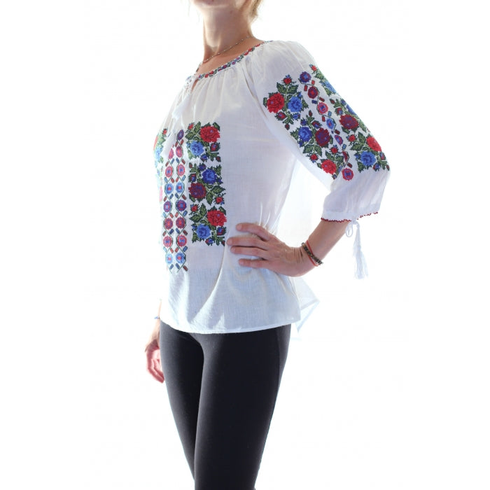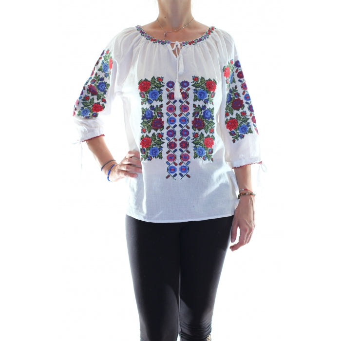 Ie romaneasca brodata cu motive romanesti traditionale. Modelele cusute pe iile romanesti, dar si varietatea culorilor au o semnificatie aparte.