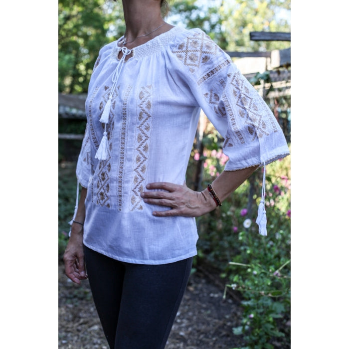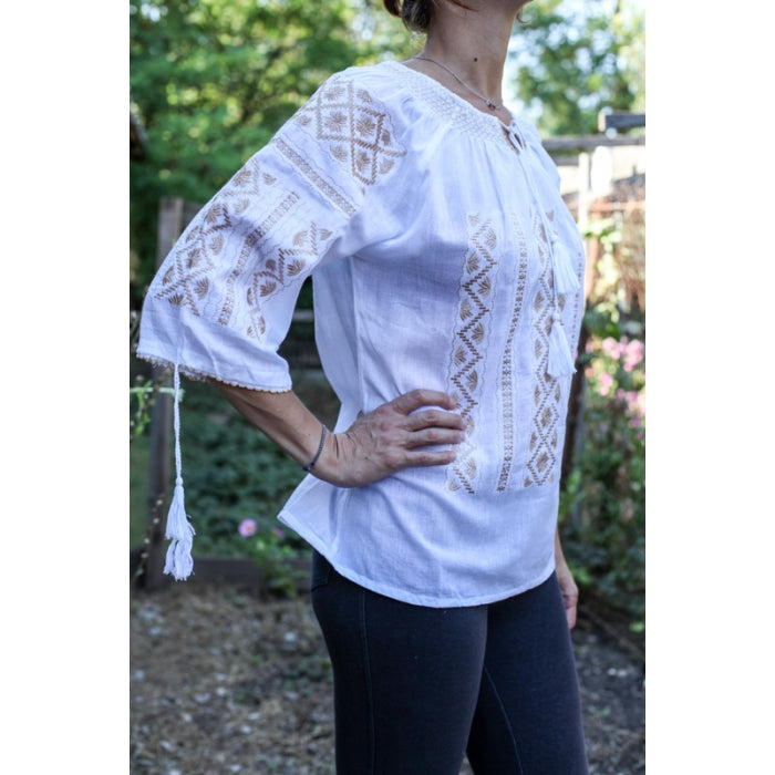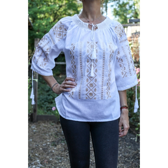 Bluza brodata la masina din panza de bumbac 100%.
