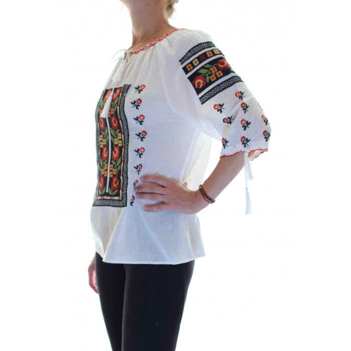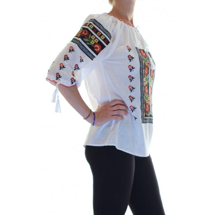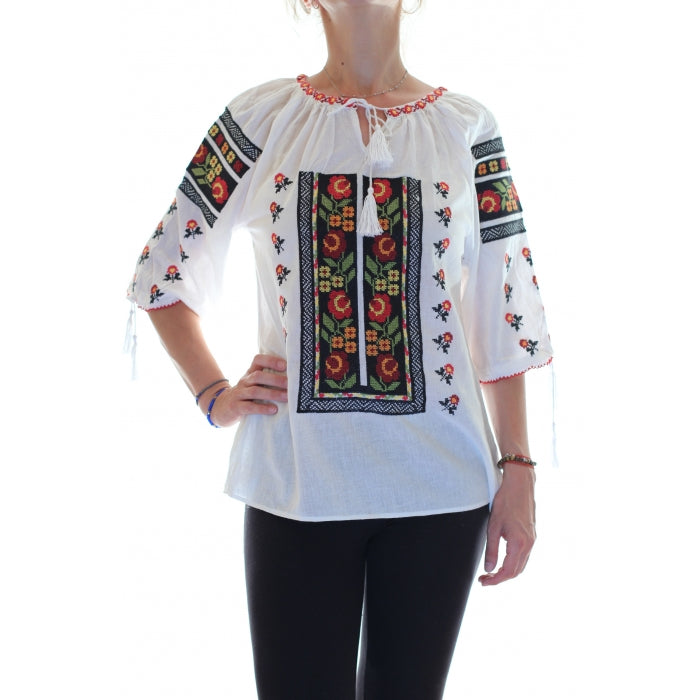 Ie romaneasca brodata cu motive romanesti traditionale. Modelele cusute pe iile romanesti, dar si varietatea culorilor au o semnificatie aparte.