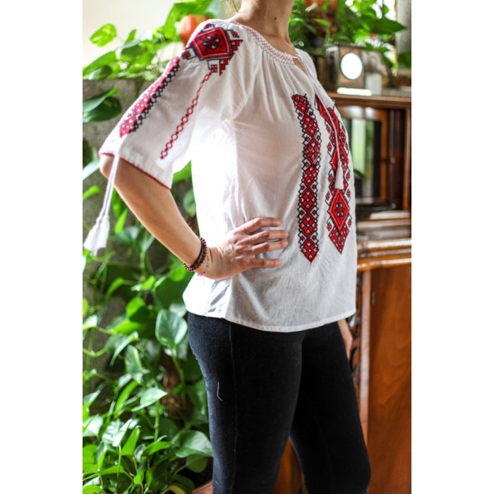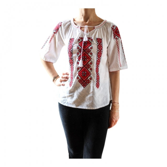 Bluza brodata la masina din panza de bumbac 100%.