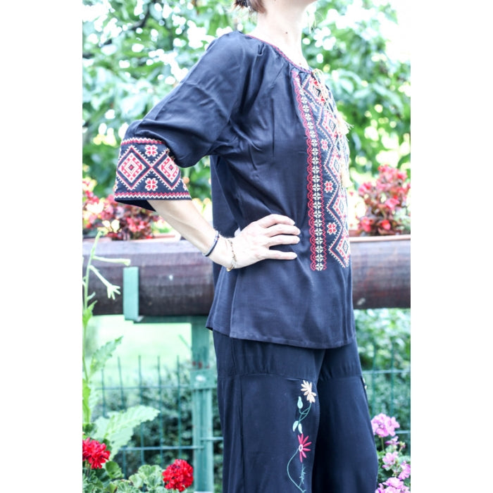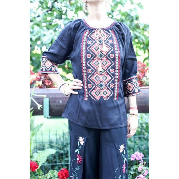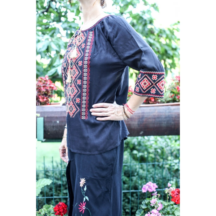 Bluza brodata la masina din panza de bumbac 100%.