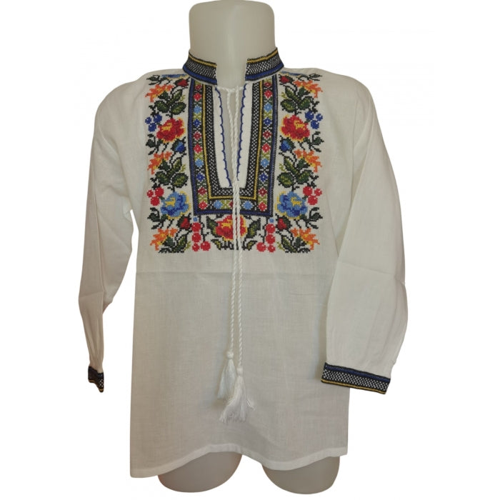 Ie romaneasca pentru copii cu model traditional brodat la masina.
