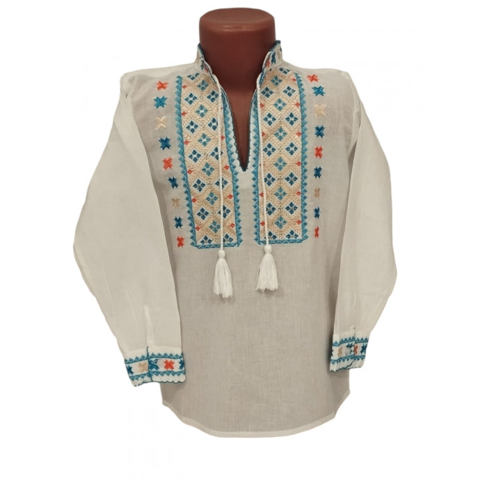 Ie romaneasca pentru copii cu model traditional brodat la masina.