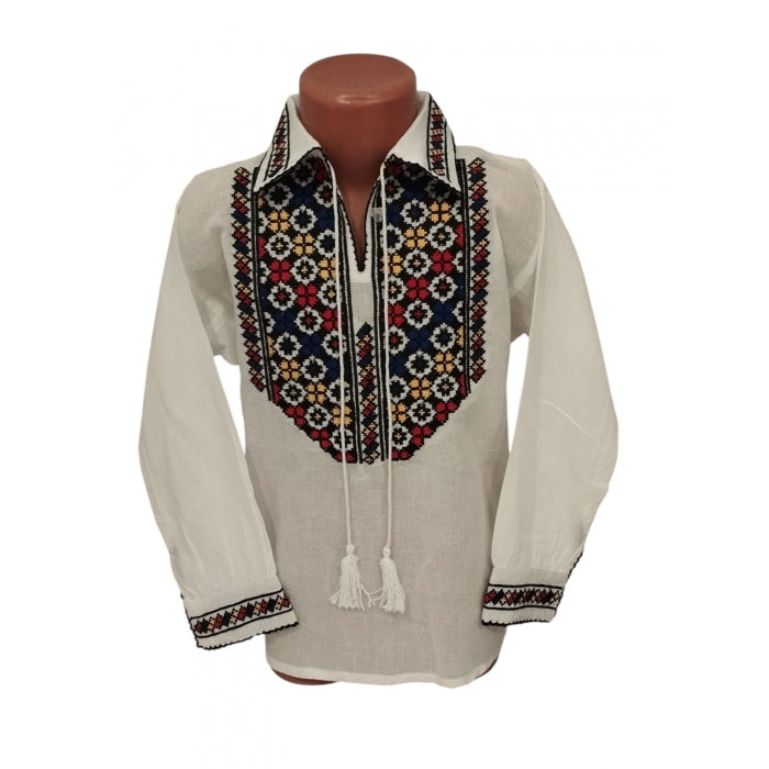 Ie romaneasca pentru copii cu model traditional brodat la masina.