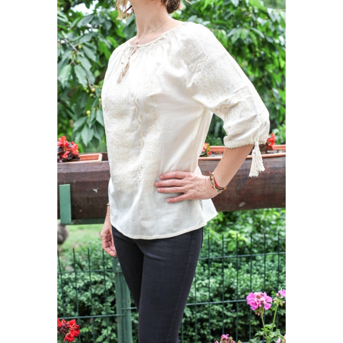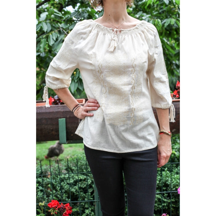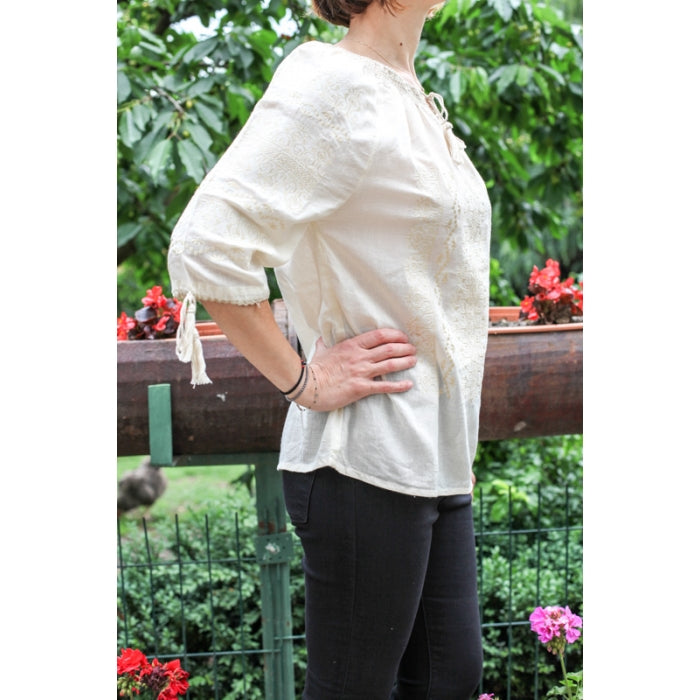 Bluza brodata la masina din panza de bumbac 100%.