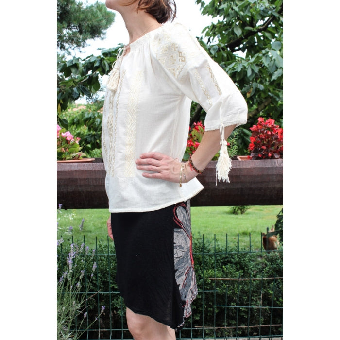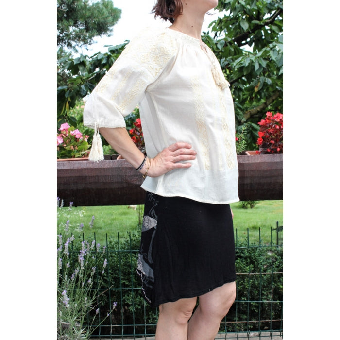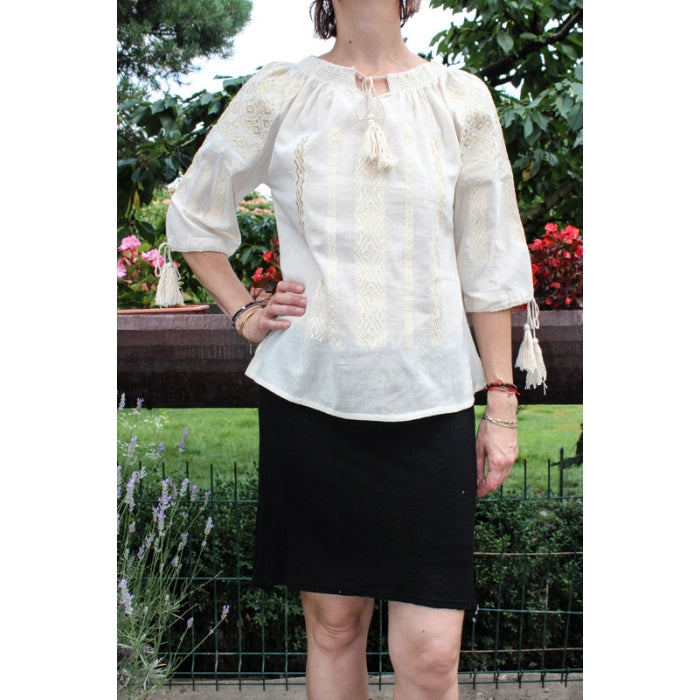 Bluza ie brodata la masina din panza de bumbac 100% culoare bej.