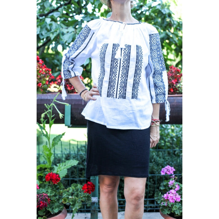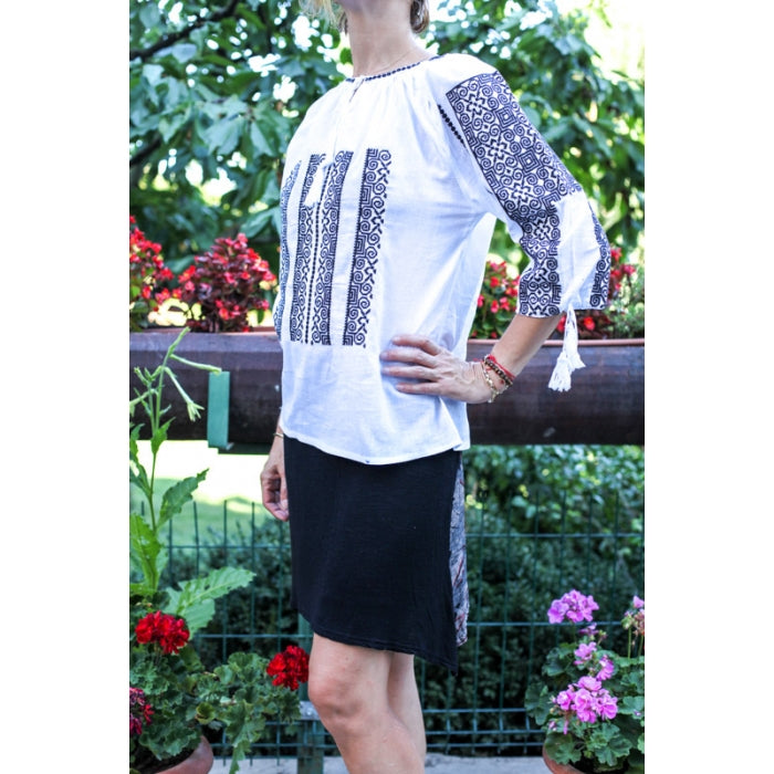 Bluza brodata la masina din panza de bumbac 100%.