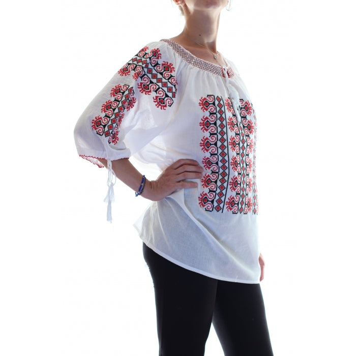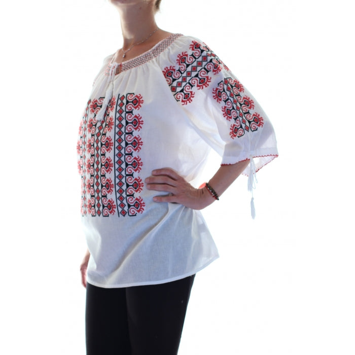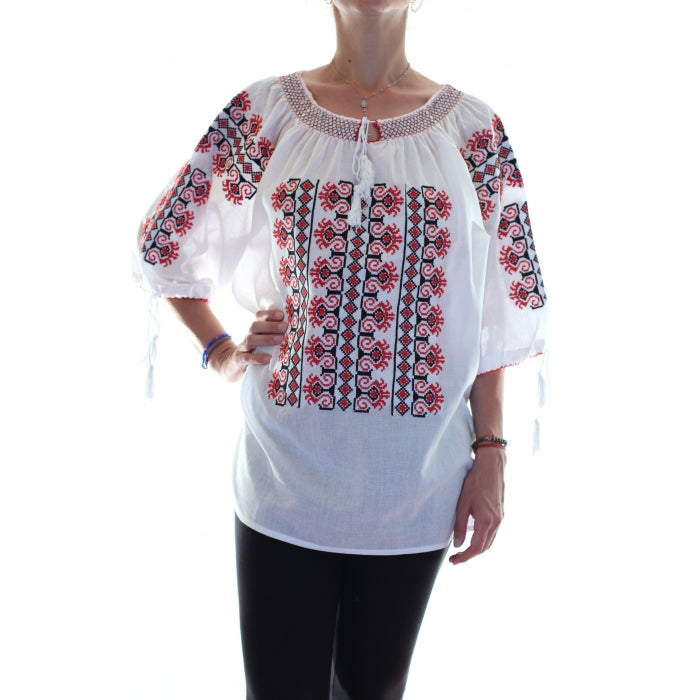 Ie romaneasca brodata cu motive romanesti traditionale. Modelele cusute pe iile romanesti, dar si varietatea culorilor au o semnificatie aparte.