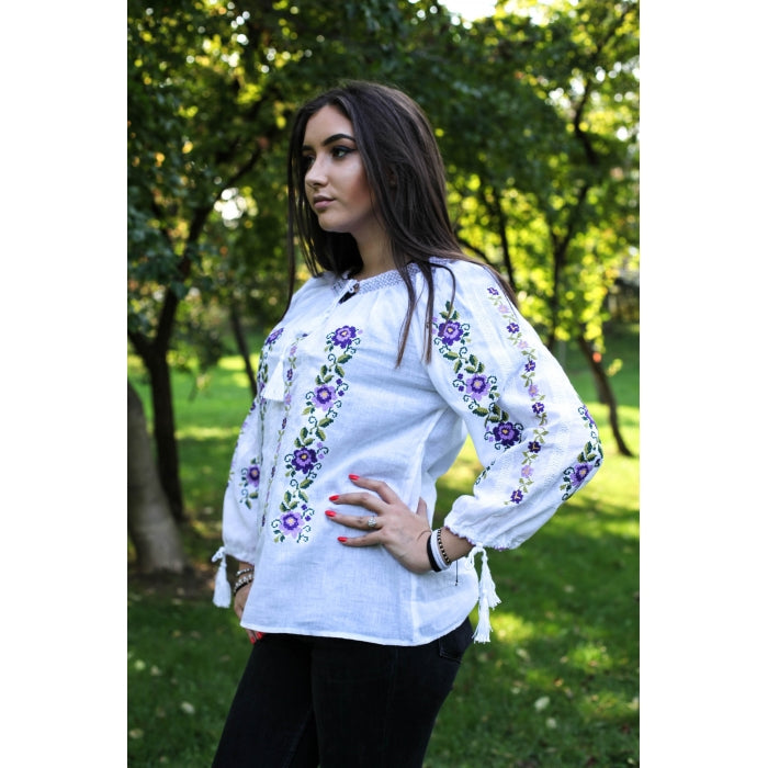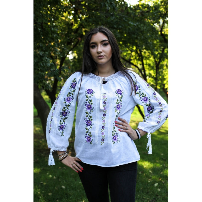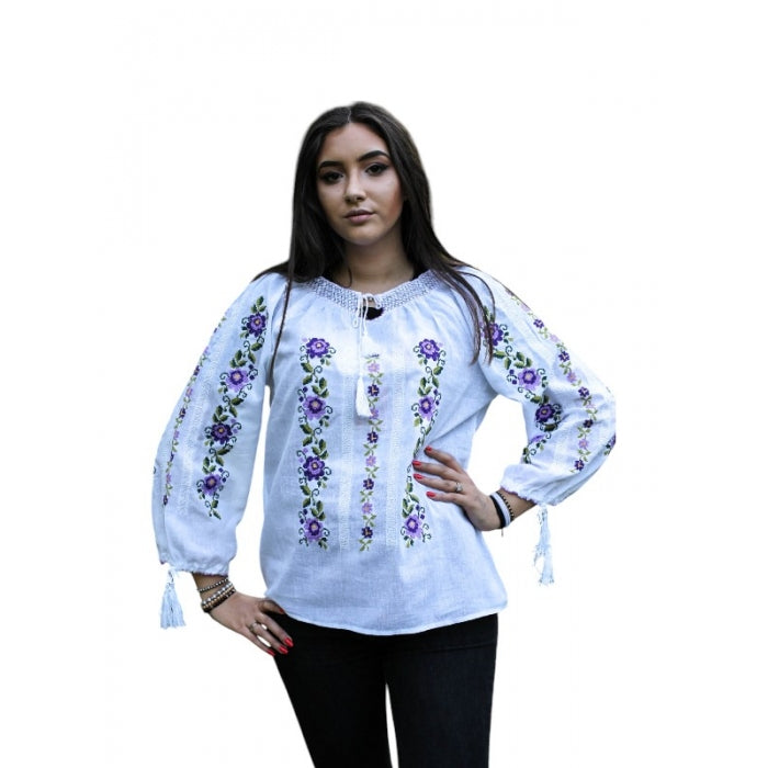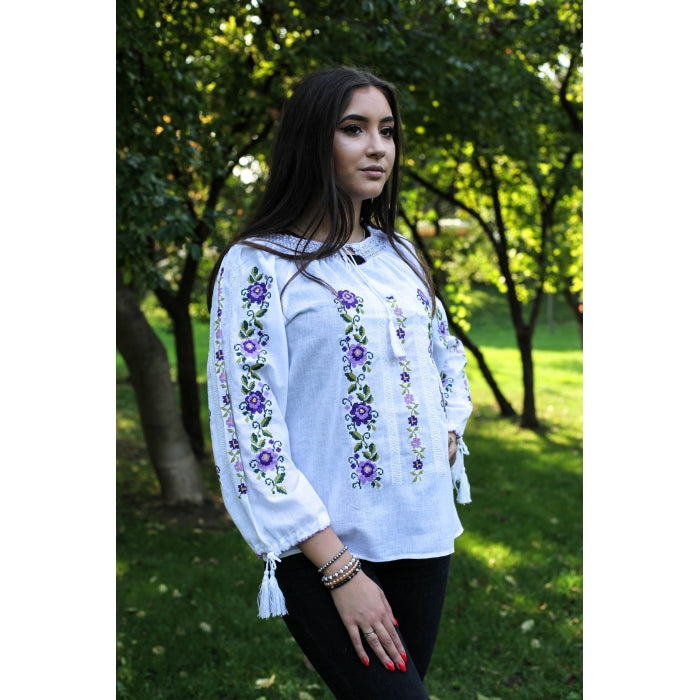 Bluza brodata la masina din panza de bumbac 100%.
