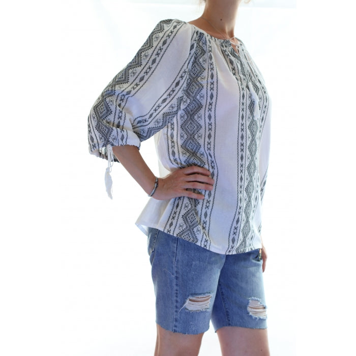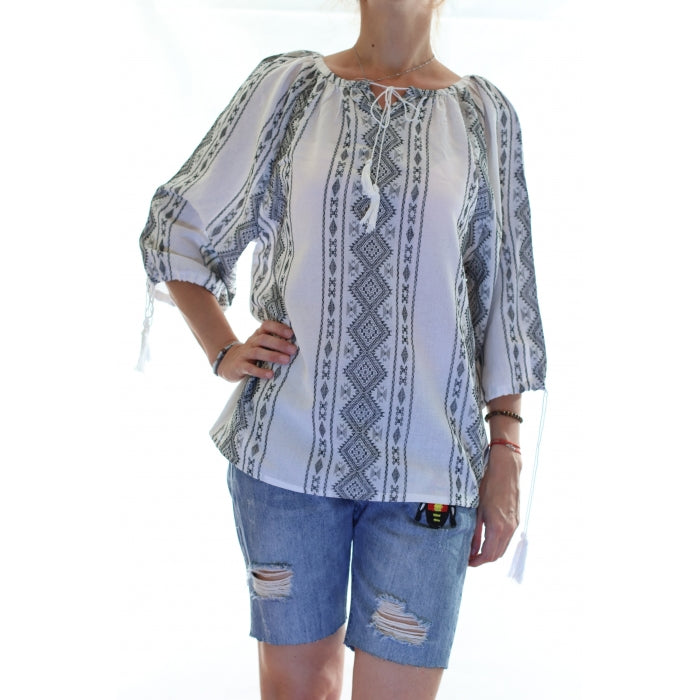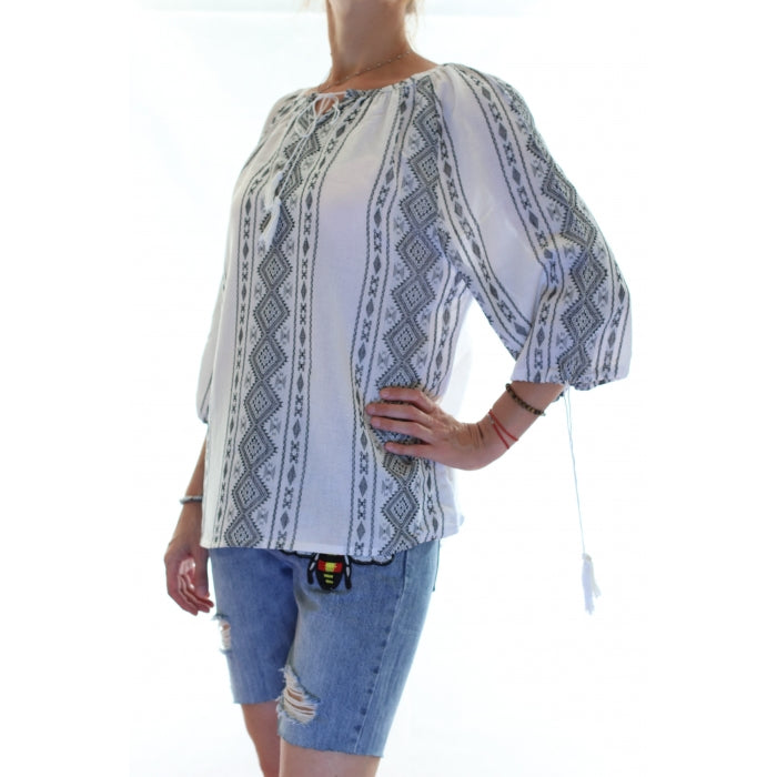 Bluza brodata la masina din panza de bumbac 100%.