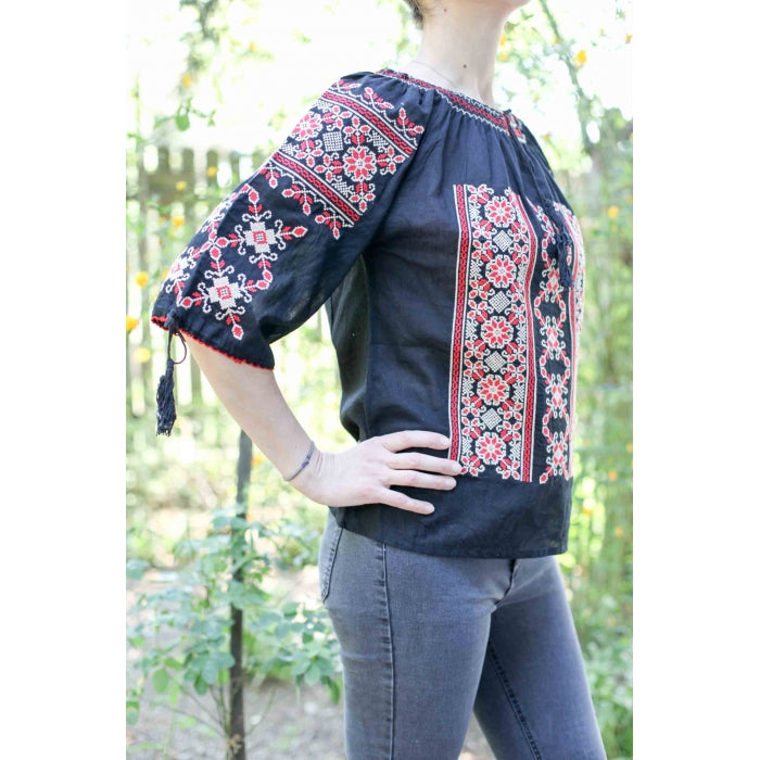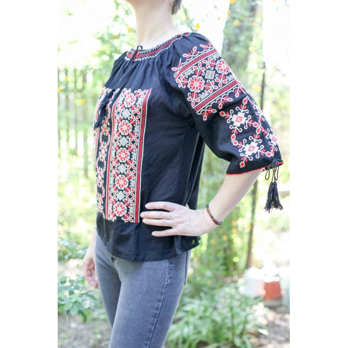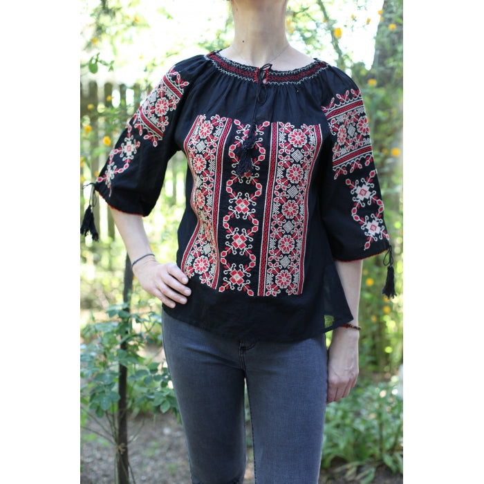 Bluza brodata la masina din panza de bumbac 100%.