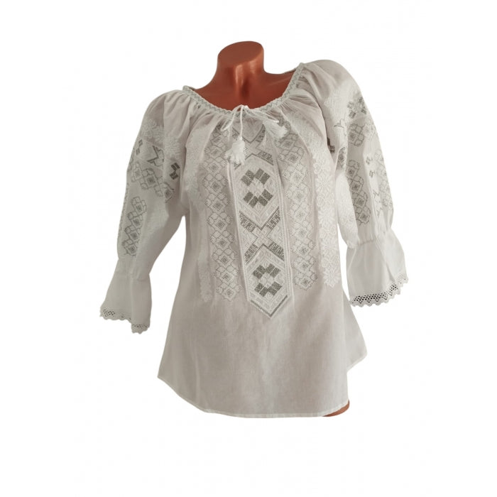 Această ie românească autentică cu mâneci trei sferturi este confecționată din bumbac natural de cea mai înaltă calitate, oferind atât confort, cât și durabilitate. Decorată cu broderii tradiționale roșii și negre, această ie aduce un omagiu moștenirii culturale românești, fiind perfectă pentru evenimente speciale sau pentru a adăuga o notă de autenticitate garderobei tale zilnice.