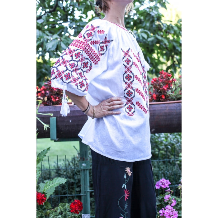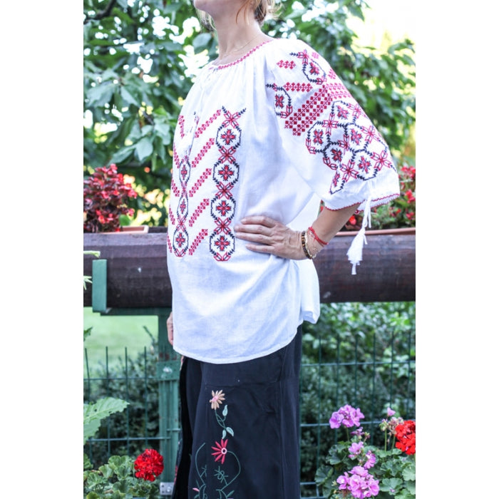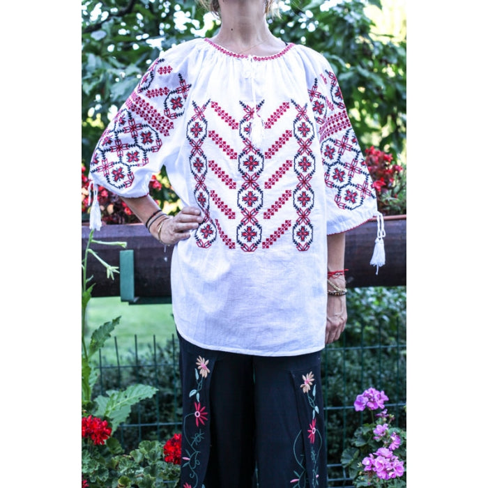 Bluza brodata la masina din panza de bumbac 100%, marimi mari.