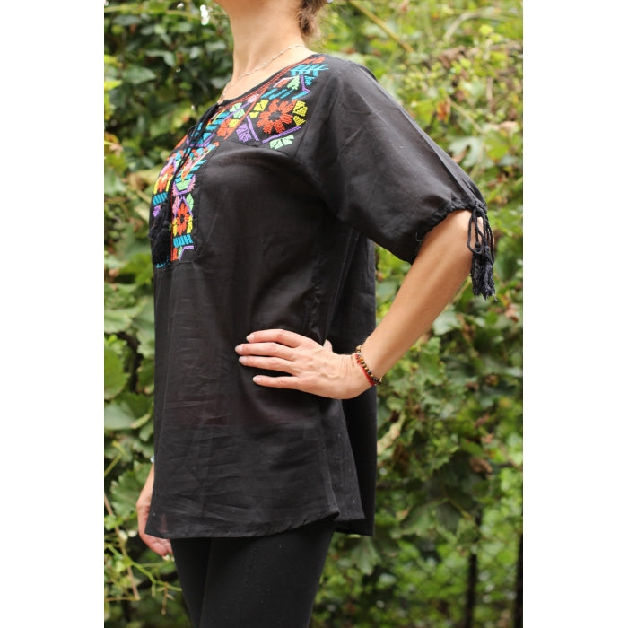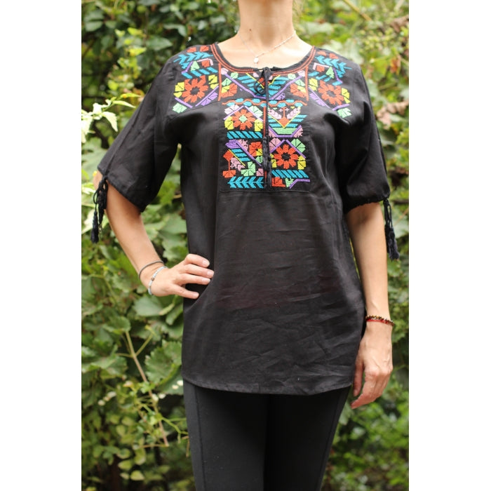 Bluza brodata la masina din panza de bumbac 100%.