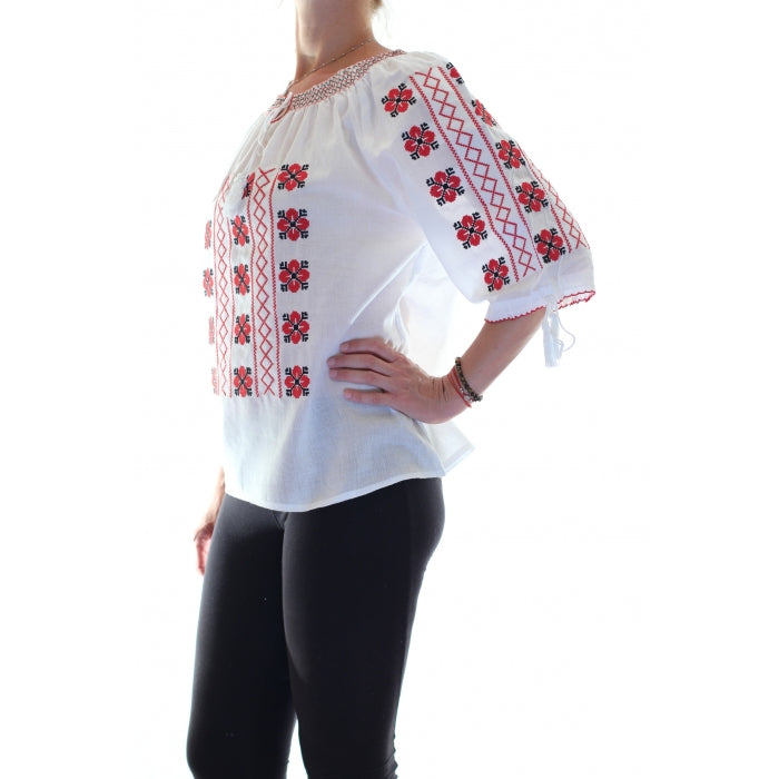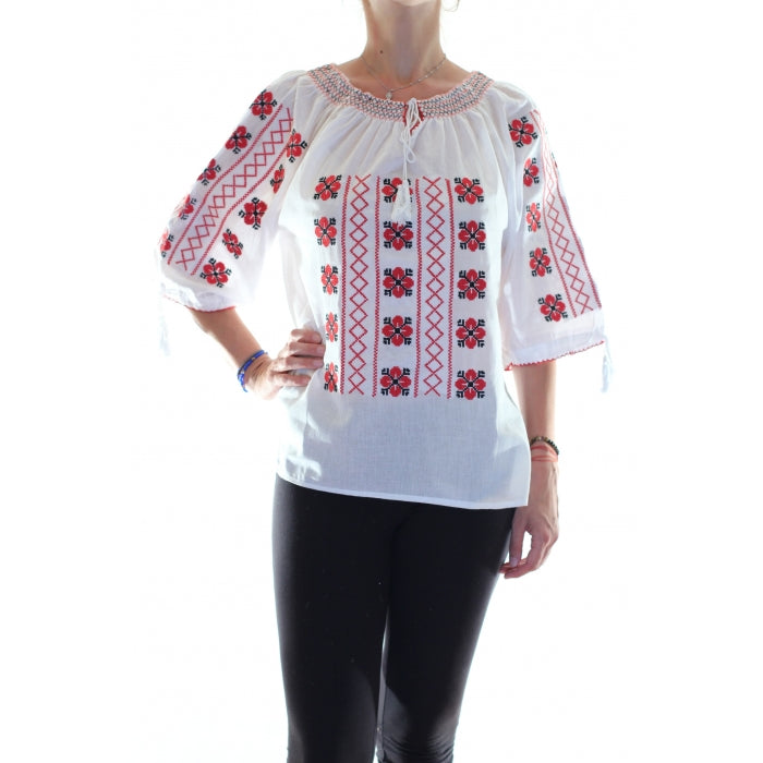 Ie romaneasca brodata cu motive romanesti traditionale. Modelele cusute pe iile romanesti, dar si varietatea culorilor au o semnificatie aparte.