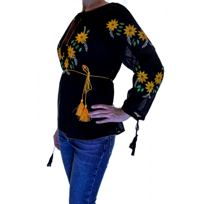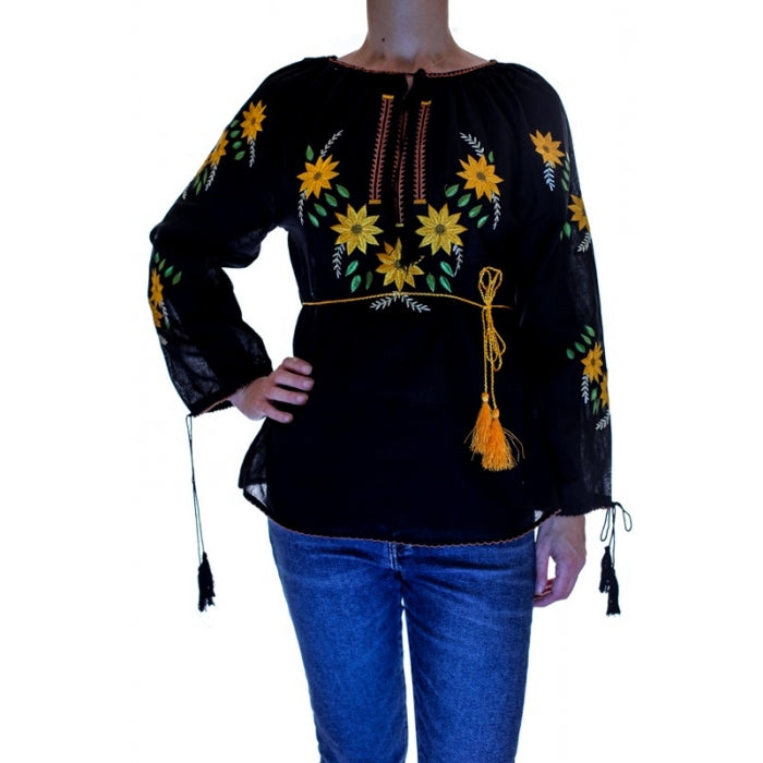 Bluza brodata la masina din panza de bumbac 100%.