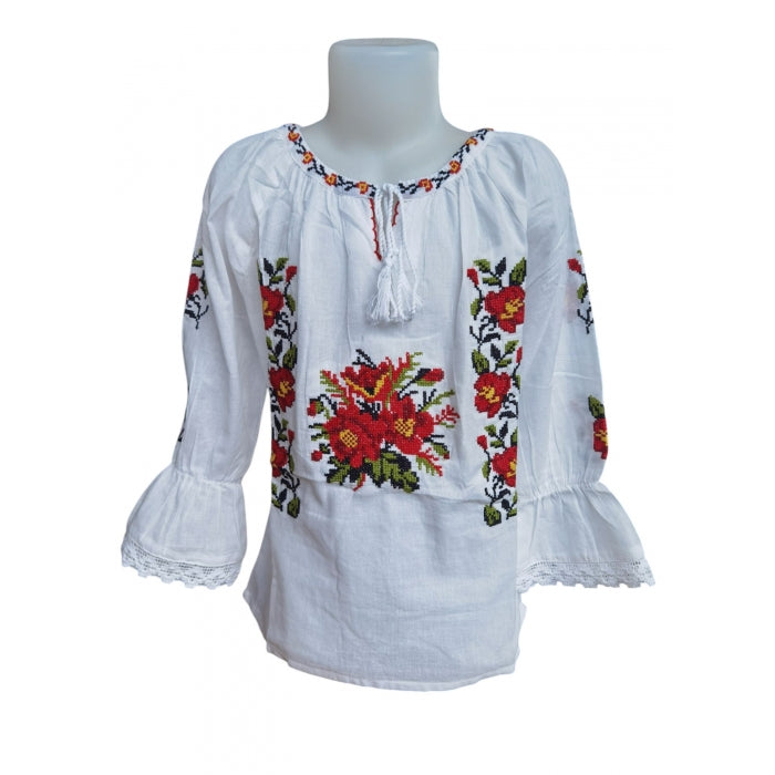 ia tradițională, ie românească, ie pentru fetițe, bumbac, brodată, motive tradiționale, moștenire culturală, îmbrăcăminte românească, copii, mărimi de la 2 la 16 ani.
