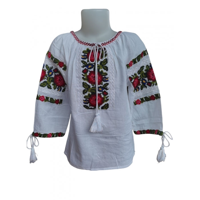 ia tradițională, ie românească, ie pentru fetițe, bumbac, brodată, motive tradiționale, moștenire culturală, îmbrăcăminte românească, copii, mărimi de la 2 la 16 ani.