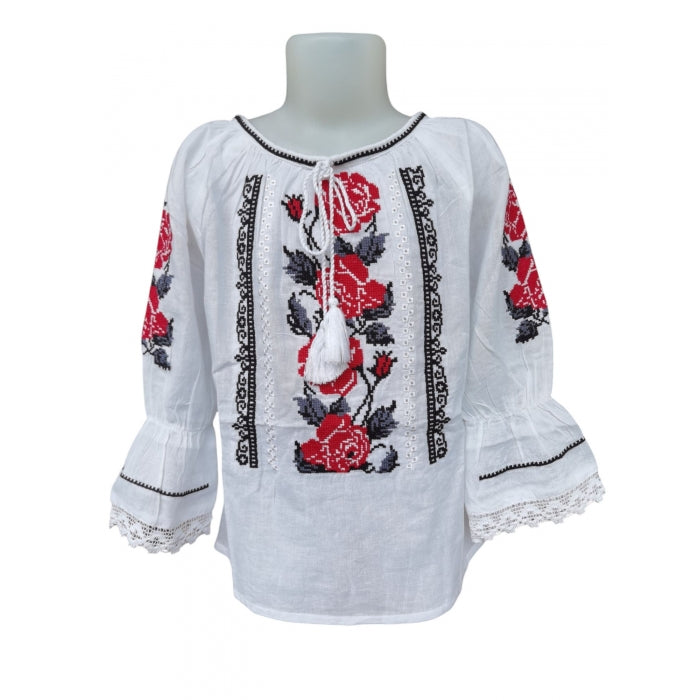 ia tradițională, ie românească, ie pentru fetițe, bumbac, brodată, motive tradiționale, moștenire culturală, îmbrăcăminte românească, copii, mărimi de la 2 la 16 ani.