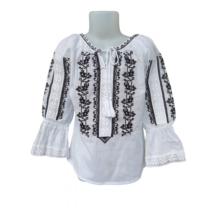 ia tradițională, ie românească, ie pentru fetițe, bumbac, brodată, motive tradiționale, moștenire culturală, îmbrăcăminte românească, copii, mărimi de la 2 la 16 ani.