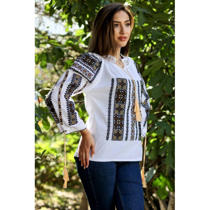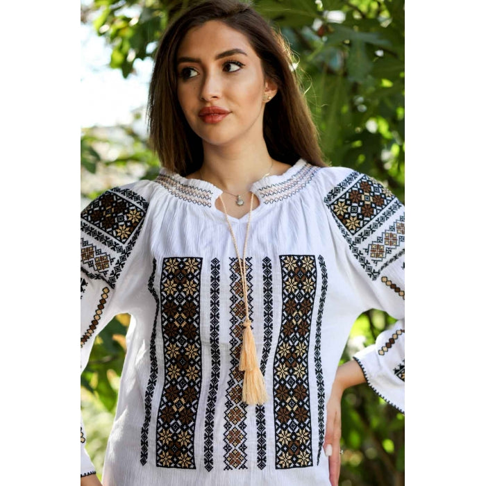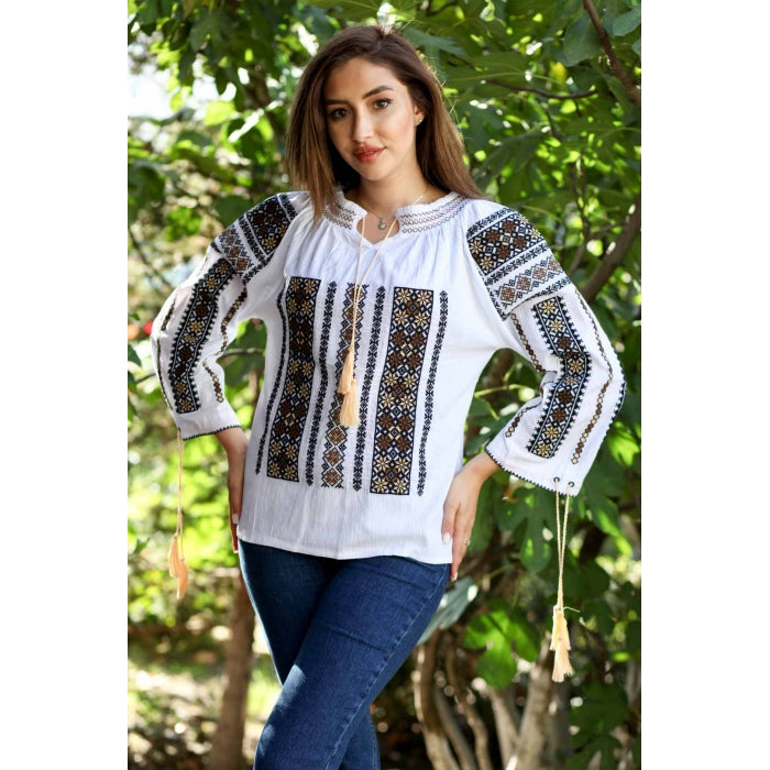 ie Traditionala Romaneasca Stilizata brodata la masina pe panza de bumbac de inalta calitate.