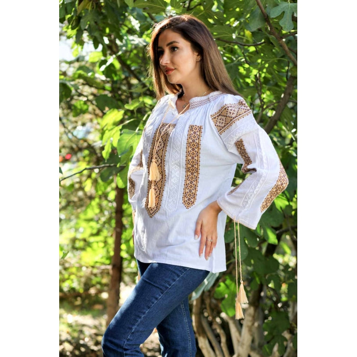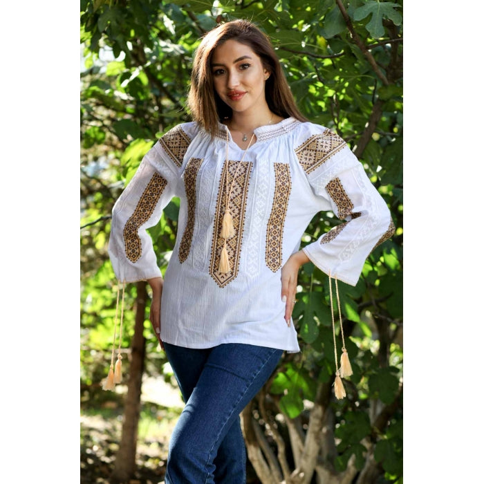 ie Traditionala Romaneasca Stilizata brodata la masina pe panza de bumbac de inalta calitate.