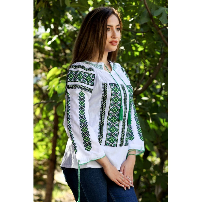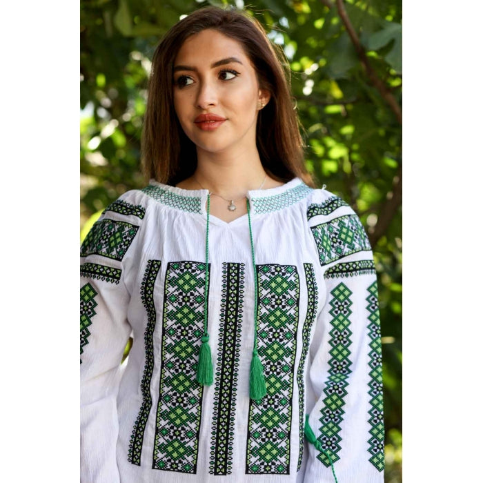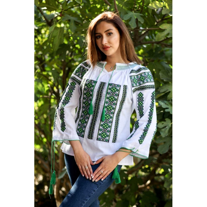 Ie traditionala brodata cu elemente naturale bogate si stralucitoare. O ie romaneasca stilizata deosebita, plina de culoare si rafinament. Delicatetea broderiei, puritatea materialului o fac o piesa de rezistenta in orice garderoba. Comanda acum ianationala!