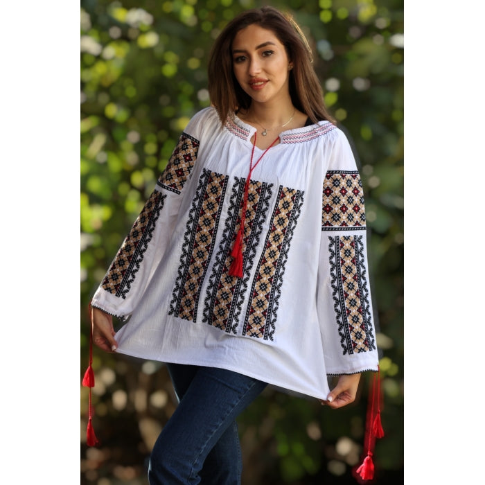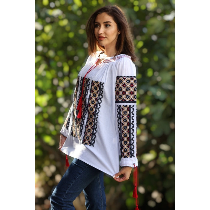 ie Traditionala Romaneasca Stilizata brodata la masina pe panza de bumbac de inalta calitate.