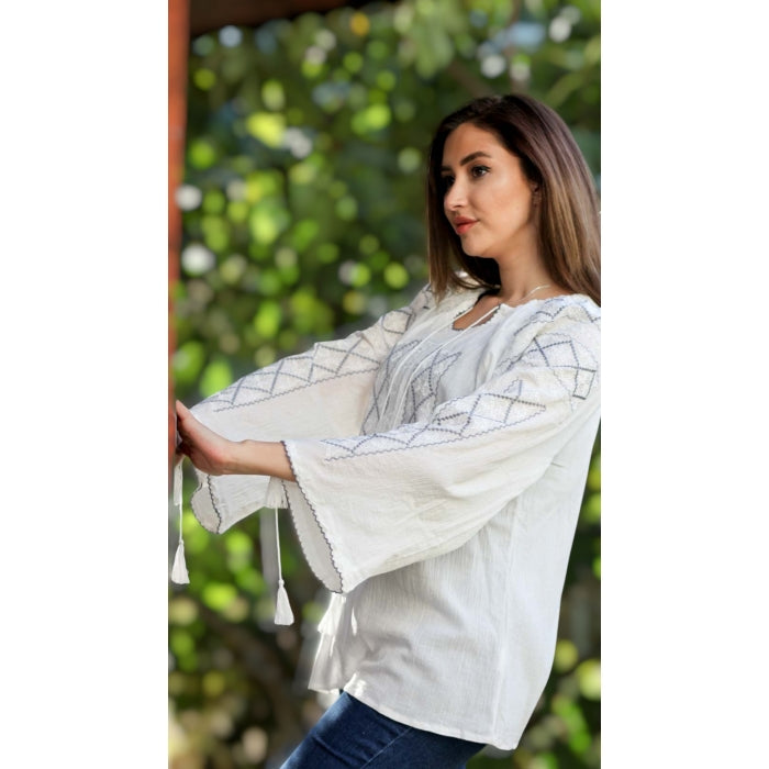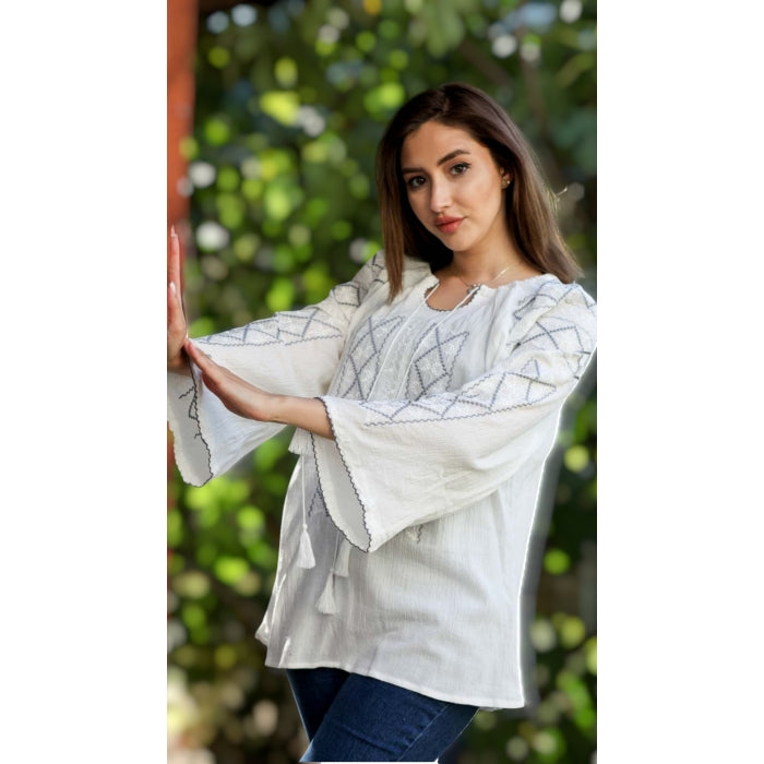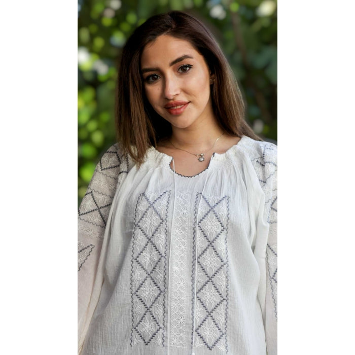 Ie traditionala brodata cu elemente naturale bogate si stralucitoare. O ie romaneasca stilizata deosebita, plina de culoare si rafinament. Delicatetea broderiei, puritatea materialului o fac o piesa de rezistenta in orice garderoba. Comanda acum ianationala!